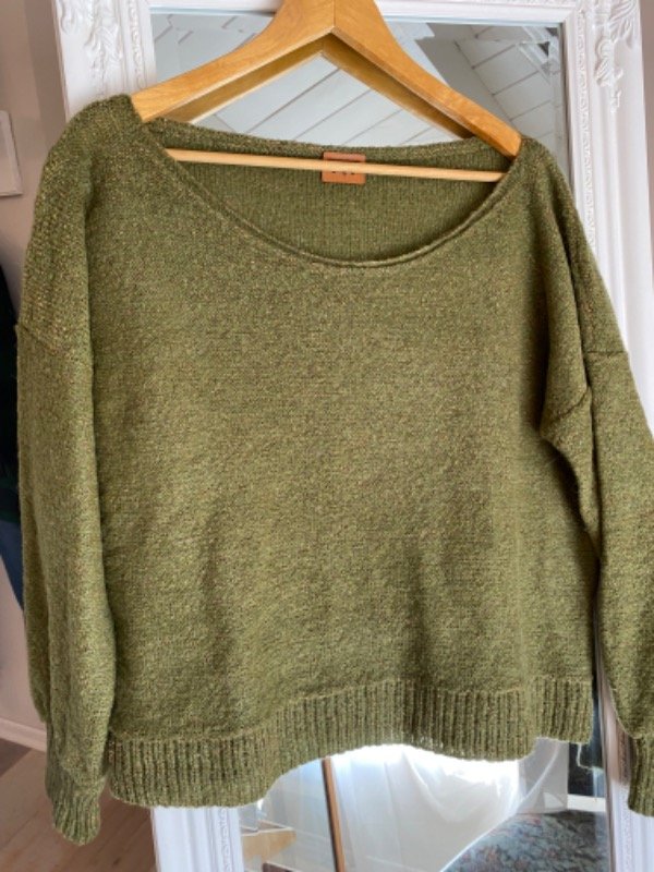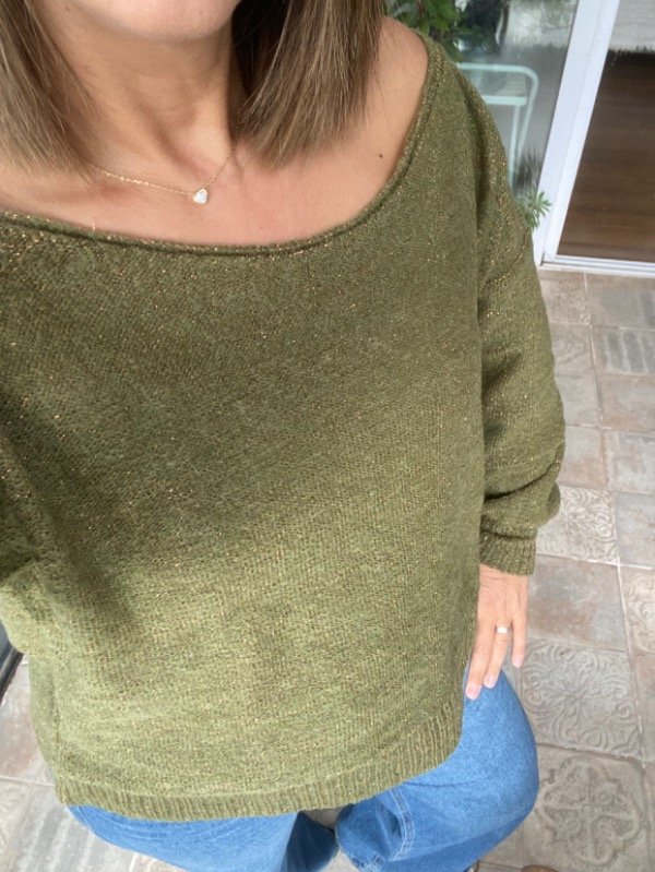 cuello bote caido, medidas 120 cm de contorno de busto y 50 cm largo.